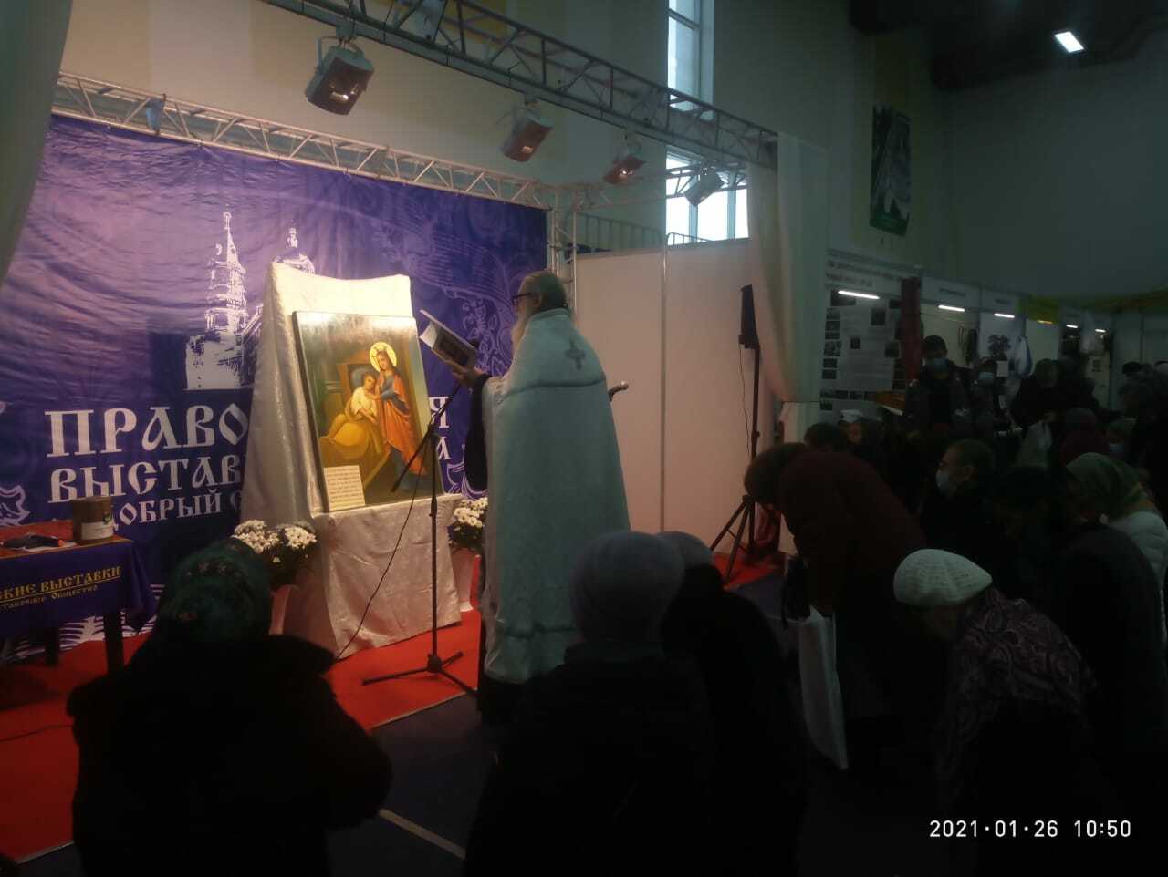 Настоятель прихода иерей Андрей Верхотуров рассказал, что на выставку они традиционно привезли свою храмовую икону: «Перед этим образом молятся в чрезвычайных ситуациях – когда кто-то из родственников попал в заключение или только вышел из тюрьмы. Такие люди приходят к нам и просят, чтобы мы молились за них, подают записочки, и потом в течение всего года мы за них совершаем молебное пение перед иконой. И те люди, которые в прошлые годы получали реальную помощь, уже ждут выставку, приходят к нам снова».